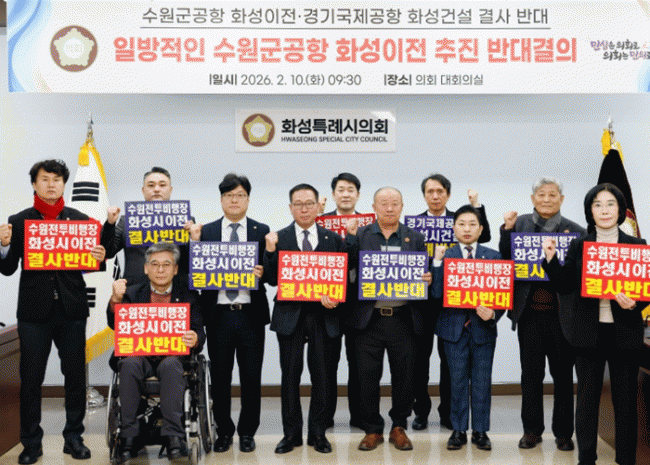 [Áö¿ªÁ¤Ä¡] ¼ö¿ø ±º°øÇ× È­¼º½Ã ÀÌÀü¹Ý´ëƯÀ§, '¼ö¿ø±º°øÇ× ÀÌÀü ±¹°¡Àü·«»ç¾÷ ÃßÁø ¹× ¹üÁ¤ºÎTF ±¸¼º' ¹Ý´ë ±Ôź °áÀÇ |2026. 02.10