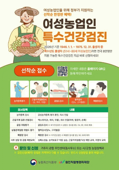 [NWS¹æ¼Û=Çѽ¸ñ ±âÀÚ]¿À»ê½Ã´Â ³óÀÛ¾÷À¸·Î ÀÎÇÑ Á÷¾÷¼º ÁúȯÀ» ¿¹¹æÇÏ°í ¿©¼º³ó¾÷ÀÎÀÇ °Ç°­ ÁõÁøÀ» À§ÇØ ¡®¿©¼º³ó¾÷ÀΠƯ¼ö°Ç°­°ËÁø Áö¿ø»ç¾÷¡¯À» ÃßÁøÇÑ´Ù°í ¹àÇû´Ù. À̹ø »ç¾÷Àº ³óÀÛ¾÷ ȯ°æ¿¡ Àå±â°£ ³ëÃâµÇ´Â ¿©¼º³ó¾÷ÀÎÀÇ °Ç°­À» ¡¦