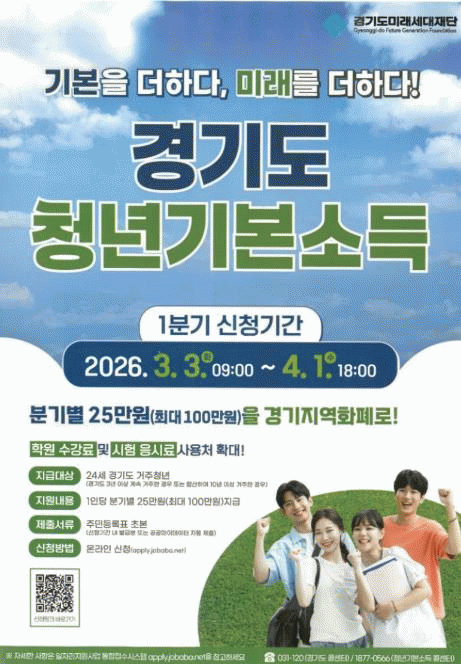 [NWS¹æ¼Û=Çѽ¸ñ ±âÀÚ]¿À»ê½Ã´Â 24¼¼ û³â¿¡°Ô ºÐ±âº° 25¸¸ ¿øÀ» Áö±ÞÇÏ´Â ¡®Ã»³â±âº»¼Òµæ¡¯ 2026³â 1ºÐ±â ½ÅûÀ» 3¿ù 3ÀϺÎÅÍ 4¿ù 1ÀϱîÁö Á¢¼öÇÑ´Ù°í ¹àÇû´Ù. ½Åû ´ë»óÀº ½ÅûÀÏ ±âÁØ °æ±âµµ¿¡ 3³â ÀÌ»ó ¿¬¼Ó °ÅÁÖÇ߰ųª, °ú°Å °æ±âµµ¡¦