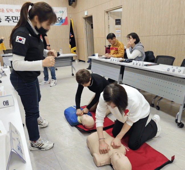 [NWS¹æ¼Û=Çѽ¸ñ ±âÀÚ]¿À»ê½Ã ´ë¿ø2µ¿ ÁÖ¹ÎÀÚġȸ´Â Áö³­ 3ÀÏ µ¿ Áֹμ¾ÅÍ ´ëȸÀǽǿ¡¼­ ÁÖ¹ÎÀÚġȸ À§¿øµéÀ» ´ë»óÀ¸·Î ÀÀ±Þ»óȲ ´ëÀÀ ¿ª·® °­È­¸¦ À§ÇÑ ¡®½ÉÆó¼Ò»ý¼ú(CPR) ¹× ÀÀ±Þóġ ±³À°¡¯À» ½Ç½ÃÇß´Ù°í ¹àÇû´Ù. À̹ø ±³À°Àº ÃÖ±Ù ÀÏ¡¦