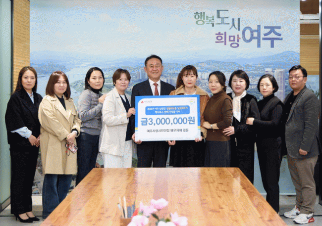 [NWS¹æ¼Û=Çѽ¸ñ ±âÀÚ]¿©ÁÖ»ç¶û½Ã¹Î¿¬ÇÕ ¹è¿ìÀÚȸ´Â Áö³­ 3¿ù 18ÀÏ ¿©ÁÖ½ÃÀÇ Ãë¾à °èÃþÀ» µ½±â À§ÇÑ ¼º±Ý 300¸¸¿øÀ» ±âŹÇß´Ù. ¿©ÁÖ»ç¶û½Ã¹Î¿¬ÇÕ ¹è¿ìÀÚȸ´Â ¿©ÁÖ»ç¶û½Ã¹Î¿¬ÇÕÀÇ ¹è¿ìÀÚ 20¿©¸íÀ¸·Î ±¸¼ºµÈ ´Üü·Î Áö³­ 3¿ù 2ÀÏ¿¡ °³ÃÖÇÑ¡¦