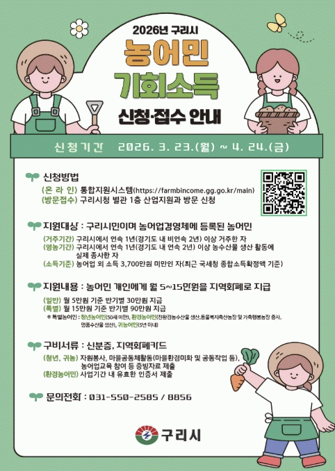 [»çȸ] ±¸¸®½Ã, 2026³â ³ó¾î¹Î ±âȸ ¼Òµæ 4¿ù 24ÀϱîÁö ½Åû¡¤Á¢¼ö |2026. 04.07