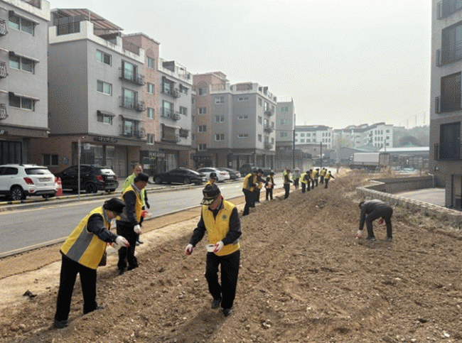 [NWS¹æ¼Û=Çѽ¸ñ ±âÀÚ]ÆÄÁֽà ¿îÁ¤4µ¿ ½Ç¹ö°æÂû´ë°¡ ÇàÁ¤º¹Áö¼¾ÅÍ ÁÖº¯ ÀÏ´ë¿¡ ÀâÇ®·Î ¹æÄ¡µÅ ÀÖ´ø Àå¼Ò¸¦ Á¤ºñÇÏ¿© ¾Æ¸§´Ù¿î ²É¹çÀ¸·Î Å»¹Ù²Þ½Ã۱â À§ÇØ ²É¾¾ »Ñ¸®±â ÀÛ¾÷À» ¿Ï·áÇß´Ù. ¿îÁ¤4µ¿ ½Ç¹ö°æÂû´ë´Â ÃÖ±Ù ¿îÁ¤4µ¿ ÇàÁ¤º¹Áö¼¾ÅÍ¡¦