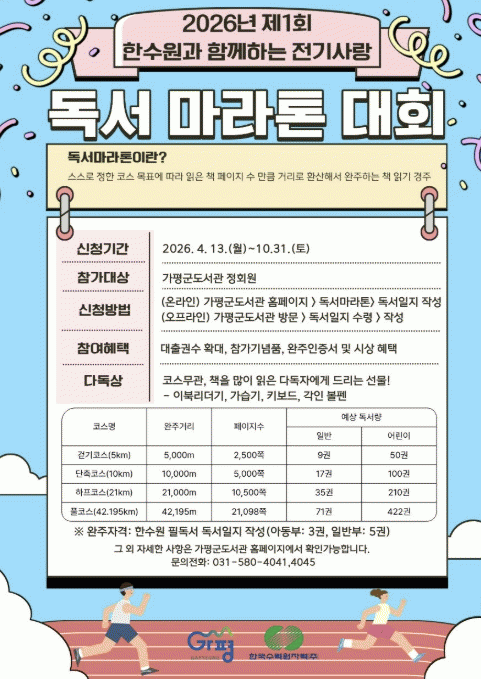 [»çȸ] °¡Æò±º, ÇѼö¿ø Áö¿ø 'Àü±â»ç¶û µ¶¼­¸¶¶óÅæ' µ¹ÀÔ |2026. 04.16
