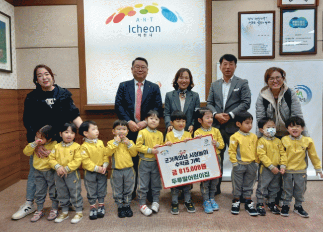 [NWS¹æ¼Û=Çѽ¸ñ ±âÀÚ]ÀÌõ½Ã ÀåÈ£¿øÀ¾ µÎ·ç¸»¾î¸°ÀÌÁýÀº 11¿ù 11ÀÏ, ¾î¸°À̵é°ú ÇÔ²² ÀåÈ£¿øÀ¾ÇàÁ¤º¹Áö¼¾ÅÍ¿¡ ¹æ¹®ÇØ ±º°¡Á·ÀÇ ³¯ ¾Æ³ª¹Ù´Ù ½ÃÀå³îÀÌ Çà»çÀÇ ¼öÀÍ±Ý 815,000¿øÀ» Àü´ÞÇß´Ù. µÎ·ç¸»¾î¸°ÀÌÁýÀÇ ¾Æ³ª¹Ù´Ù ½ÃÀå³îÀÌ´Â Çкθð¡¦