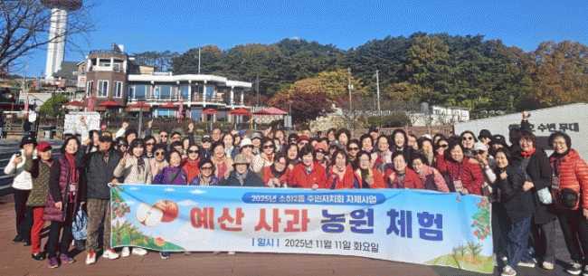[NWS¹æ¼Û=Çѽ¸ñ ±âÀÚ]±¤¸í½Ã ¼ÒÇÏ2µ¿ ÁÖ¹ÎÀÚġȸ´Â 11ÀÏ ¼ÒÇÏ2µ¿ ÁֹΠ70¿© ¸í°ú ÇÔ²² Ãæ³² ¿¹»ê±º ÀÏ¿ø¿¡¼­ ¡®¿¹»ê »ç°ú³óÀå üÇ衯 ÇÁ·Î±×·¥À» ÁøÇàÇß´Ù. À̹ø üÇèÀº ÁֹεéÀÌ Àϻ󿡼­ ¹þ¾î³ª ÀÚ¿¬ ¼Ó¿¡¼­ ¿©À¯¸¦ Áñ±â°í, ÀÌ¿ô °£ ¡¦