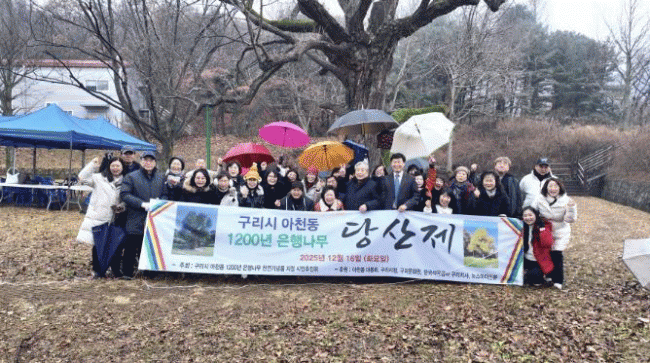 [NWS¹æ¼Û=Çѽ¸ñ ±âÀÚ]±¸¸®½Ã´Â 12¿ù 16ÀÏ Çѱ¹¼®À¯°ø»ç ±¸¸®Áö»ç ³»¿¡ À§Ä¡ÇÑ ¾ÆÃµµ¿ ÀºÇ೪¹« ¾Õ¿¡¼­ ¸¶À»ÀÇ ¾È³ç°ú dz¿ä¸¦ ±â¿øÇÏ´Â ¡®¾ÆÃµµ¿ ÀºÇ೪¹« ´ç»êÁ¦¡¯°¡ ¿­·È´Ù°í ¹àÇû´Ù. À̹ø Çà»ç´Â ¡®±¸¸®½Ã ¾ÆÃµµ¿ 1,200³â ÀºÇ೪¹« õ¡¦