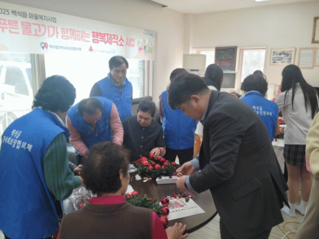 [NWS¹æ¼Û=Çѽ¸ñ ±âÀÚ]¾çÁֽà ¹é¼®À¾ Áö¿ª»çȸº¸ÀåÇùÀÇü°¡ Áö³­ 17ÀÏ ¿¬¸»À» ¸Â¾Æ ¹é¼®À¾ °¡¾÷1¸® °æ·Î´ç¿¡¼­ ¡®Çª¸¥ ¹°°í±â°¡ ÇÔ²²ÇÏ´Â ÇູÁ¦ÀÛ¼Ò¡¯ »ç¾÷ÀÇ ÀÏȯÀ¸·Î Å©¸®½º¸¶½º ¸®½º¿Í ¹«µåµî ¸¸µé±â Ȱµ¿À» ÁøÇàÇß´Ù. À̹ø ÇÁ·Î±×¡¦