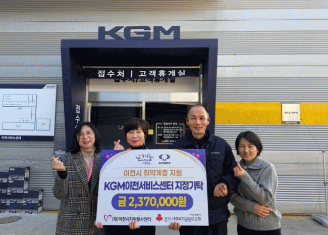 [NWS¹æ¼Û=Çѽ¸ñ ±âÀÚ]ÀÌõ½ÃÀÚ¿øºÀ»ç¼¾ÅÍ´Â KGMÀÌõ¼­ºñ½º¼¾ÅͰ¡ ÀÌõ½Ã ÀÚ¿øºÀ»ç Ȱ¼ºÈ­ ¹× Ãë¾à°èÃþ Áö¿øÀ» À§ÇÑ ³ª´®½Çõ ¼º±ÝÀ» ÁöÁ¤ ±âŹÇß´Ù°í ¹àÇû´Ù. À̹ø ±âŹÀº KGMÀÌõ¼­ºñ½º¼¾ÅͰ¡ Áö³­ÇØ ÀÌõ½ÃÀÚ¿øºÀ»ç¼¾ÅÍ ÁÖ°üÀ¸·Î ÃßÁø¡¦