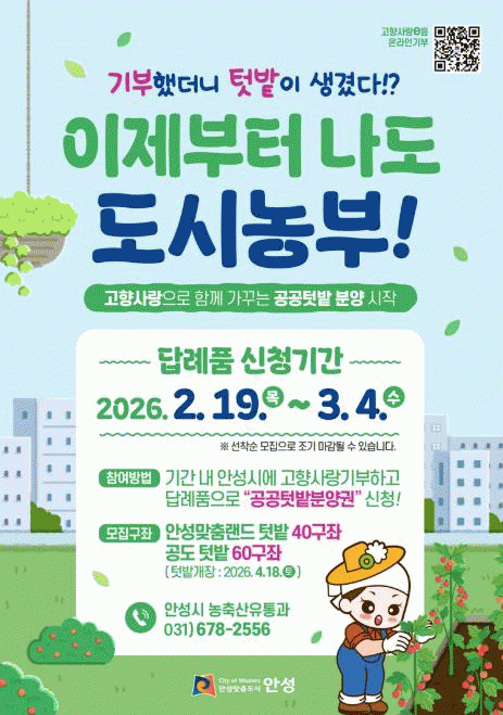 [»çȸ] ¾È¼º½Ã, °íÇâ»ç¶û±âºÎ ´ä·ÊǰÀ¸·Î °ø°øÅÔ¹ç ºÐ¾ç±Ç Á¦°ø |2026. 02.06