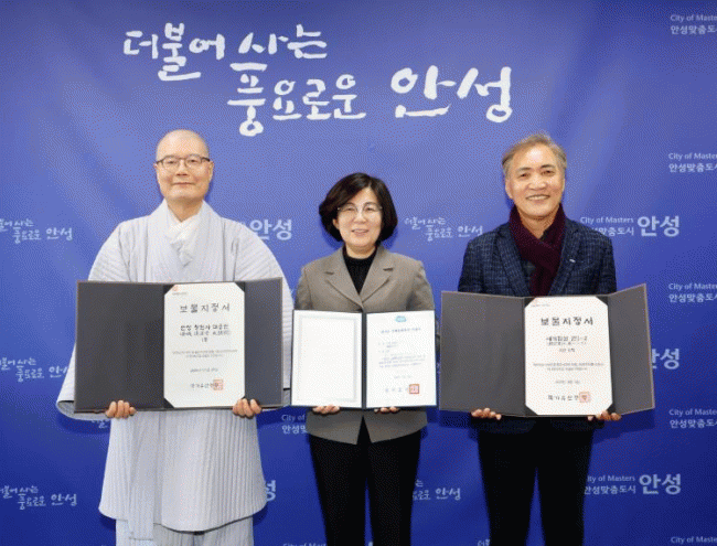 [»çȸ] ¾È¼º û¿ø»ç ´ë¿õÀü, ¿¹±âÁý¼³, °æÃ¥½Å°ø¹® ±¹°¡ ¹× µµÁöÁ¤À¯»ê 'º¸¹°' ¹× 'µµÀ¯Çü¹®È­À¯»ê' Áõ¼­ ¼ö¿©½Ä |2026. 02.06