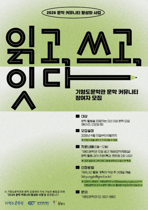 [»çȸ] ±¤¸í¹®È­Àç´Ü, 5ÀÎ ÀÌ»ó ¹®ÇÐ °øµ¿Ã¼¿¡ 'âÀÛ °ø°£¡¤Æ¯°­' Áö¿ø |2026. 04.10