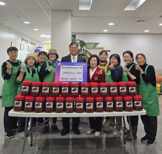 [NWS¹æ¼Û=Çѽ¸ñ ±âÀÚ]¾çÁֽà ȸõ2µ¿ »õ¸¶À»ºÎ³àȸ°¡ ÃÖ±Ù °æ·ÎȿģÀÇ ¸¶À½À¸·Î Á÷Á¢ ¸¸µç °íÃßÀå(2kg) 39ÅëÀ» °ü³» °æ·Î´ç¿¡ Àü´ÞÇß´Ù. À̳¯ ±âºÎµÈ °íÃßÀåÀº ȸõ2µ¿ »õ¸¶À»ºÎ³àȸ ȸ¿ø 10¿© ¸íÀÌ ¾ÆÄ§ºÎÅÍ ¸ð¿© ¸¸µç °íÃßÀåÀ¸·Î, °ü¡¦