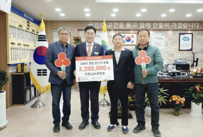 [NWS¹æ¼Û=Çѽ¸ñ ±âÀÚ]¾çÆò±ºÀº Áö³­ 10ÀÏ, ¾çÆò±º65¿¬ÇÕȸ°¡ µ¿Àý±â Àú¼Òµæ Ãë¾à°èÃþÀÇ µû¶æÇÑ °Ü¿ï³ª±â¸¦ À§ÇÑ ÀÌ¿ôµ½±â ¼º±Ý 320¸¸ ¿øÀ» ±âºÎÇϸç, ¡®»ç¶ûÀÇ ¿¬Åº ¸ðÀ¸±â ¿îµ¿¡¯ÀÇ Ã¹ ½ÃÀÛÀ» ¾Ë·È´Ù°í ¹àÇû´Ù. ±èÀ¯Ã¶ ȸÀåÀº ¡°Ãß¿î ¡¦