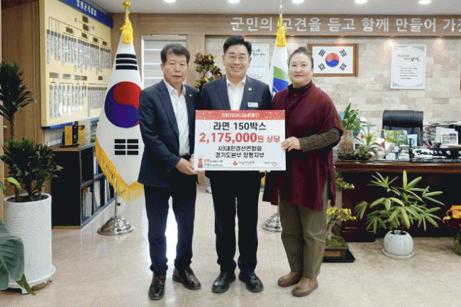 [NWS¹æ¼Û=Çѽ¸ñ ±âÀÚ]¾çÆò±ºÀº Áö³­ 10ÀÏ, (»ç)´ëÇѰæ½Å¿¬ÇÕȸ °æ±âµµº»ºÎ ¾çÆòÁöºÎ¿¡¼­ ¾î·Á¿î ÀÌ¿ôµé¿¡°Ô ¿ÂÁ¤À» ´ãÀº 2,175õ ¿ø »ó´çÀÇ ¶ó¸é 150¹Ú½º¸¦ ±âºÎÇß´Ù°í ¹àÇû´Ù. À̳¯ Àü´Þ½Ä¿¡´Â ³ë¿µÂù °æ±âµµº»ºÎÀåÀ» ºñ·ÔÇØ ¹ÚÀºÇÏ ¾ç¡¦