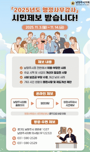 [Áö¿ªÁ¤Ä¡] ³²¾çÁÖ½ÃÀÇȸ, ³»½ÇÀÖ´Â ÇàÁ¤»ç¹«°¨»ç À§ÇØ¡®½Ã¹ÎÁ¦º¸¡¯ ¹Þ´Â´Ù |2025. 10.31