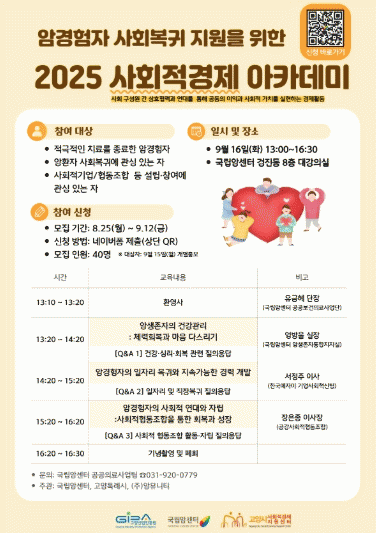 [NWS¹æ¼Û=ÇãÀº¼­ ±âÀÚ]°í¾ç»ê¾÷ÁøÈï¿øÀÌ ¾Ï °æÇèÀÚÀÇ °Ç°­ÇÑ »çȸº¹±Í¸¦ Áö¿øÇϱâ À§ÇÑ ±³À° ÇÁ·Î±×·¥À» ¸¶·ÃÇß´Ù. °í¾ç»ê¾÷ÁøÈï¿ø °í¾ç½Ã»çȸÀû°æÁ¦Áö¿ø¼¾ÅͰ¡ ¿À´Â 9¿ù 16ÀÏ ±¹¸³¾Ï¼¾ÅÍ¿¡¼­¡®2025³â °í¾ç½Ã »çȸÀû°æÁ¦ ¾ÆÄ«µ¥¹Ì¡¯¸¦ °³¡¦