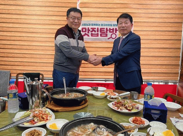 [NWS¹æ¼Û=Çѽ¸ñ ±âÀÚ]±¸¸®½Ã´Â Áö³­ 10¿ù 17ÀÏ ¡®¹é°æÇö ±¸¸®½ÃÀå°ú ÇÔ²²ÇÏ´Â ¿Í±¸¸® ¸ÀÁý Ž¹æ¡¯ ÇÁ·Î±×·¥ÀÇ Çϳª·Î, °æÁ¦ ÀçÁ¤±¹ Á÷¿øµé°ú ÇÔ²² ÀÎ⵿ ¼ÒÀç ºÏ°æ´ë¹ÝÁ¡À» ¹æ¹®ÇØ ½Ä»çÇÏ°í ¾÷ÁÖ ÀǰßÀ» ûÃëÇß´Ù°í ¹àÇû´Ù. ÀÌ ÇÁ·Î±×¡¦