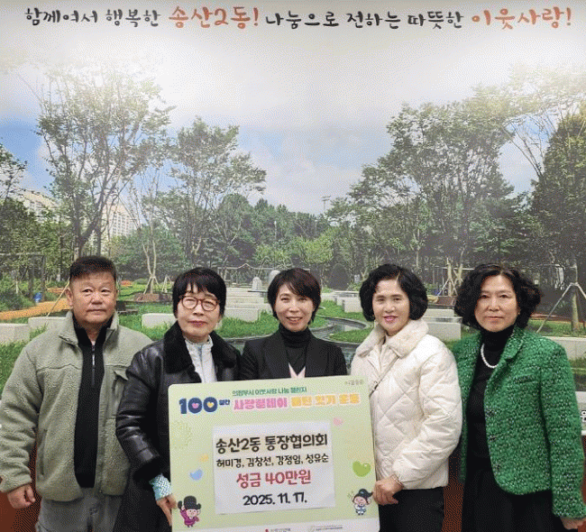 [»çȸ] ÀÇÁ¤ºÎ½Ã ¼Û»ê2µ¿ ÅëÀåÇùÀÇȸ ÀÓ¿øÁø, »ç¶û¸±·¹ÀÌ ¹èÅÏ Àձ⠼º±Ý 60¸¸ ¿ø ±âŹ |2025. 11.19