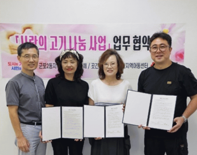 [NWS¹æ¼Û=Çѽ¸ñ ±âÀÚ]±ºÆ÷½Ã ±ºÆ÷2µ¿ Áö¿ª»çȸº¸ÀåÇùÀÇü´Â 2025³â 9¿ù 8ÀÏ Áö¿ª¾÷ü ¡®°÷°£Àνɡ¯(´ëÇ¥ÀÚ ¹Ú¿ø³²) ¹× ¡®´çµ¿Å«ºûÁö¿ª¾Æµ¿¼¾ÅÍ¡¯¿Í ÇÔ²² »ç¶ûÀÇ °í±â³ª´® Çù¾àÀ» ü°áÇß´Ù. À̹ø Çù¾àÀº ±ºÆ÷2µ¿ Áö¿ª ³» ¾÷üÀÎ ¡®°÷°£ÀΡ¦