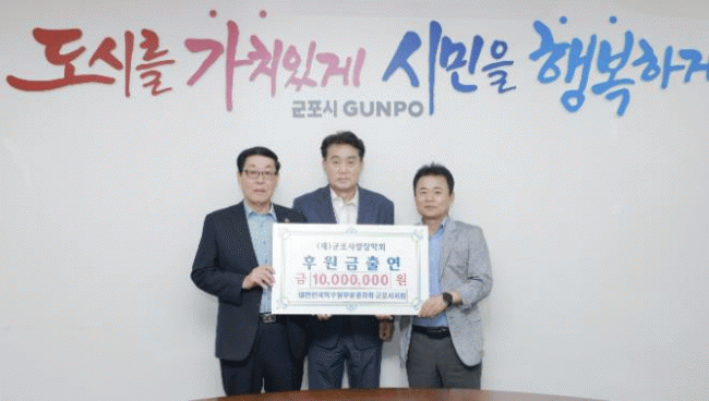 [NWS¹æ¼Û=Çѽ¸ñ ±âÀÚ]´ëÇѹα¹Æ¯¼öÀÓ¹«À¯°øÀÚȸ ±ºÆ÷½ÃÁöȸ°¡ 8ÀÏ ±ºÆ÷½Ãû ½ÃÀå½Ç¿¡¼­ 1õ¸¸ ¿øÀÇ ÀåÇбâ±ÝÀ» (Àç)±ºÆ÷»ç¶ûÀåÇÐȸ¿¡ ±âºÎÇÏ´Â ÀåÇÐ±Ý Ã⿬½ÄÀ» °¡Á³´Ù. ´ëÇѹα¹Æ¯¼öÀÓ¹«À¯°øÀÚȸ´Â ´ëÇѹα¹À» ¼öÈ£Çϱâ À§ÇØ Æ¯¼ö ÀÓ¹«¡¦
