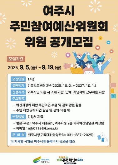 [»çȸ] ¿©ÁÖ½Ã, ÁÖ¹ÎÂü¿©¿¹»êÀ§¿øÈ¸ À§¿ø °ø°³ ¸ðÁý ½Ç½Ã |2025. 09.08