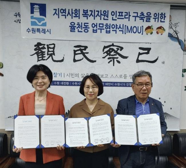 [NWS¹æ¼Û=Çѽ¸ñ ±âÀÚ]¼ö¿ø½Ã Àå¾È±¸ À²Ãµµ¿ Áö¿ª»çȸº¸ÀåÇùÀÇü´Â Áö¿ªÁÖ¹ÎÀÇ º¹ÁöÇâ»ó°ú º¹Áö»ç°¢Áö´ëÇØ¼Ò¸¦ À§ÇØ °ü³» À§Ä¡ÇÑ ¹ã²É¸¶À»2´ÜÁö ÁÖ°ÅÇູÁö¿ø¼¾ÅÍ¿Í ¾÷¹«Çù¾à(MOU)À» ü°áÇß´Ù°í ¹àÇû´Ù. ÀÌ Çù¾àÀº Áö¿ª»çȸ ³» ´Ù¾çÇÑ º¹¡¦