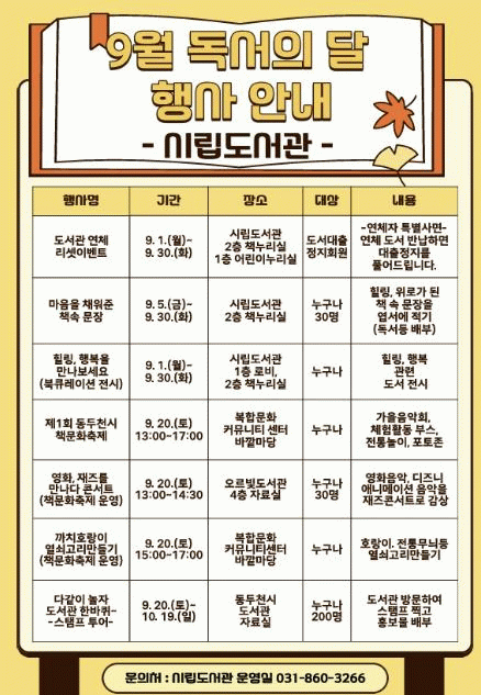 [»çȸ] µ¿µÎõ½Ã¸³µµ¼­°ü, 9¿ù µ¶¼­ÀÇ ´Þ ÇÁ·Î±×·¥ ¿î¿µ |2025. 09.05