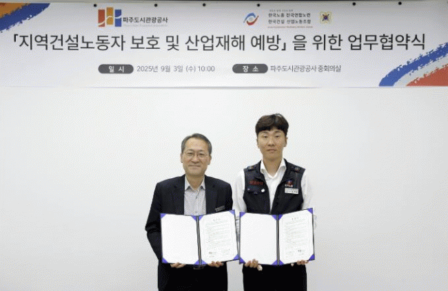 [»çȸ] ÆÄÁÖµµ½Ã°ü±¤°ø»ç, Áö¿ª°Ç¼³³ëµ¿ÀÚ º¸È£ À§ÇÑ ¾÷¹«Çù¾à ü°á |2025. 09.05