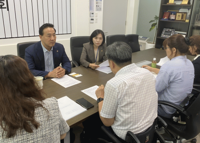 [NWS¹æ¼Û=Çѽ¸ñ ±âÀÚ]°æ±âµµÀÇȸ º¸°Çº¹ÁöÀ§¿øÈ¸ Ȳ¼¼ÁÖ ºÎÀ§¿øÀå(´õ¹ÎÁÖ, ºñ·Ê)¿Í ±è¿ë¼º ÀÇ¿ø(´õ¹ÎÁÖ, ±¤¸í4)´Â 3ÀÏ °æ±âµµÀÇȸ¿¡¼­ Çѱ¹Ã´¼öÀå¾ÖÀÎÇùȸ °æ±âµµÇùȸ(ÇùȸÀå ±èâȣ)¿Í Á¤´ãȸ¸¦ ¿­°í, ÁßµµÀå¾ÖÀÎ ÀüȯÀçȰÀ» À§ÇÑ Á¦µµ¡¦