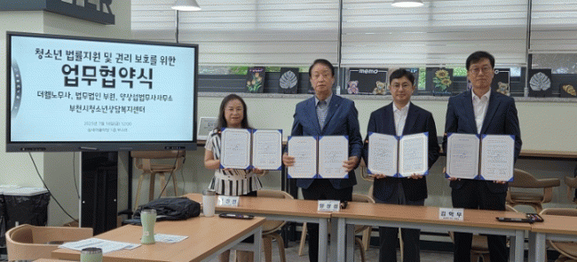 [NWS¹æ¼Û=Çѽ¸ñ ±âÀÚ]ºÎõ¿©¼ºÃ»¼Ò³âÀç´ÜÀÌ ¿î¿µÇÏ´Â ºÎõ½Ãû¼Ò³â»ó´ãº¹Áö¼¾ÅÍ´Â ºÎõÇü 1388û¼Ò³âÁö¿ø´Ü ¹ý·üÁö¿ø´Ü ¹× ÀÇ·áÁö¿ø´ÜÀÇ ½Å±Ô Âü¿© ±â°ü°ú ¾÷¹«Çù¾àÀ» ü°áÇß´Ù. À̹ø ¾÷¹«Çù¾àÀº ¹ý·üÁö¿ø´Ü°ú ÀÇ·áÁö¿ø´ÜÀ¸·Î °¢°¢ ±¸¡¦