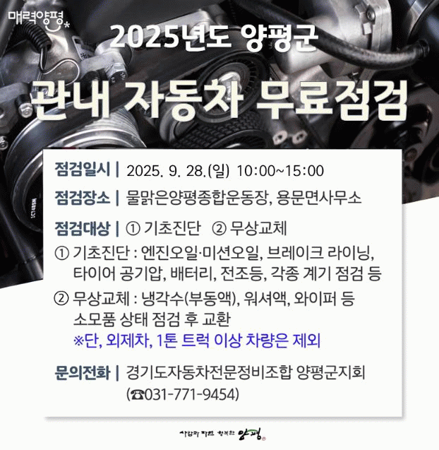 [»çȸ] ¾çÆò±º, 2025³â ÀÚµ¿Â÷ ¹«·áÁ¡°Ë ¼­ºñ½º ½Ç½Ã |2025. 09.04
