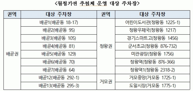 [NWS¹æ¼Û=Çѽ¸ñ ±âÀÚ]½ÃÈïµµ½Ã°ø»ç¿¡¼­ ¹è°ð, Á¤¿Õ, °Å¸ð±Ç¿ª °ø¿µÁÖÂ÷Àå 18°³¼Ò¿¡ ´ëÇÏ¿© ¿À´Â 9¿ù 14ÀϺÎÅÍ ¿ù Á¤±â±Ç Ãß÷ Á¢¼ö¸¦ °³½ÃÇÑ´Ù. Á¢¼ö ±â°£Àº 9¿ù 14ÀϺÎÅÍ 18ÀϱîÁö 5Àϰ£À̸ç, ¿ù Á¤±â±Ç ½ÅûÀ» Èñ¸ÁÇÏ´Â °æ¿ì ÇØ´ç ±â¡¦