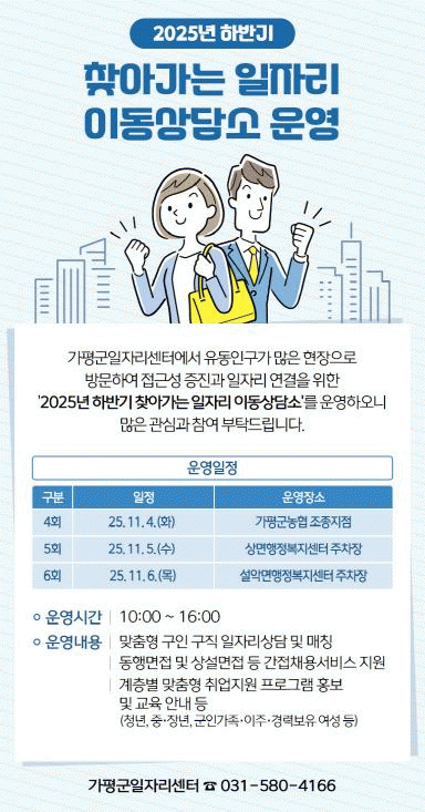 [»çȸ] °¡Æò±º, 'ã¾Æ°¡´Â ÀÏÀÚ¸® À̵¿»ó´ã¼Ò' ¿î¿µ |2025. 10.31