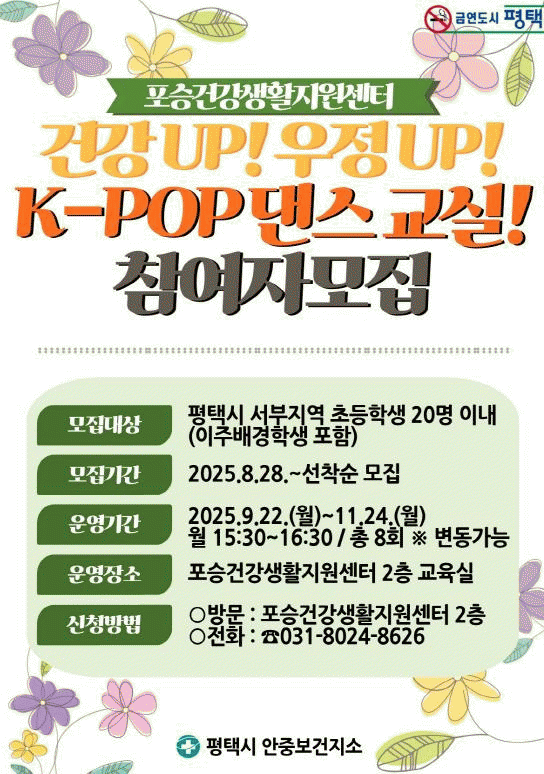 [»çȸ] ÆòÅýà Æ÷½Â°Ç°­»ýȰÁö¿ø¼¾ÅÍ, ÇϹݱâ '°Ç°­UP ¿ìÁ¤UP K-POP ´í½º ±³½Ç' Âü¿©ÀÚ ¸ðÁý |2025. 09.03