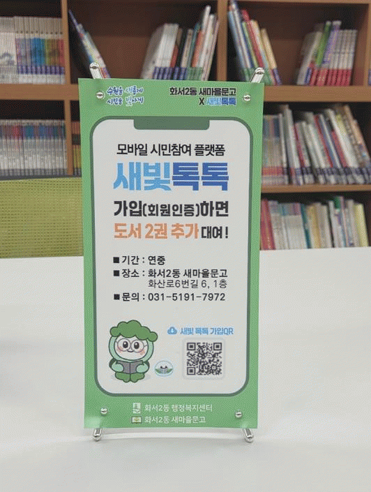 [NWS¹æ¼Û=Çѽ¸ñ ±âÀÚ]¼ö¿ø½Ã ÆÈ´Þ±¸ È­¼­2µ¿ »õ¸¶À»¹®°í´Â 9¿ùºÎÅÍ ¸ð¹ÙÀÏ ½Ã¹Î Âü¿© Ç÷§Æû ¡®»õºûÅåÅ塯 °¡ÀÔÀÚ¸¦ ´ë»óÀ¸·Î µµ¼­ ´ëÃâ ÇýÅÃÀ» È®´ëÇÏ´Â »ç¾÷À» ÁøÇàÇÑ´Ù. ¡®»õºûÅåÅ塯 °¡ÀÔÀÚ°¡ ¹®°í¸¦ ¹æ¹®ÇØ È¸¿ø ÀÎÁõÀ» Çϸé, ±âÁ¸¡¦