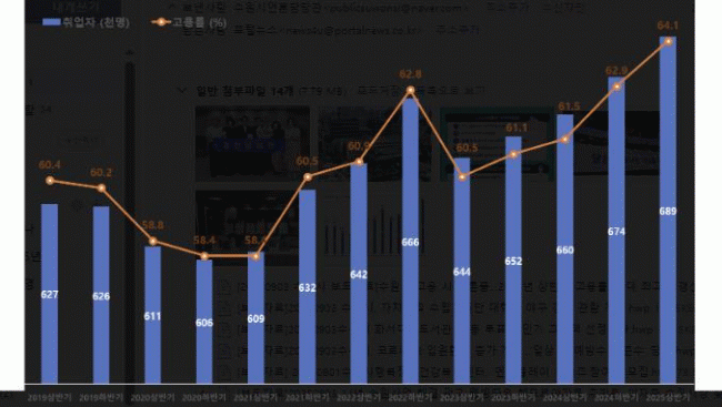 [NWS¹æ¼Û=Çѽ¸ñ ±âÀÚ]2025³â »ó¹Ý±â ¼ö¿ø½Ã °í¿ë·üÀÌ ¿ª´ë ÃÖ°íÄ¡¸¦ ±â·ÏÇß´Ù. Åë°èû ÁÖ°ü ¡®2025³â »ó¹Ý±â Áö¿ªº°°í¿ëÁ¶»ç¡¯¿¡ µû¸£¸é 2025³â »ó¹Ý±â ¼ö¿ø½Ã °í¿ë·üÀº 64.1%·Î Àü³â µ¿±âº¸´Ù 2.6%P »ó½ÂÇß´Ù. ½Ç¾÷·üÀº 3.1%·Î Àü³â °°¡¦