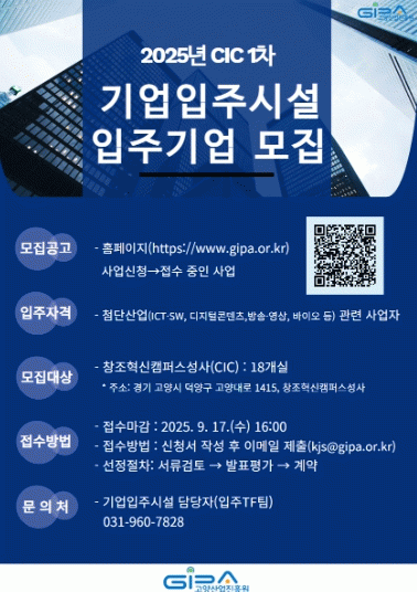 [°æÁ¦] °í¾ç»ê¾÷ÁøÈï¿ø, ±â¾÷ÀÔÁֽü³¡®Ã¢Á¶Çõ½ÅÄ·ÆÛ½º¼º»ç¡¯ ½Å±Ô ÀÔÁÖ±â¾÷ ¸ðÁý |2025. 09.02