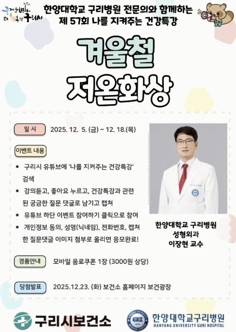 [»çȸ] ±¸¸®½Ã, 'Àú¿ÂÈ­»ó ¿¹¹æÀ» À§ÇÑ °Ç°­Æ¯°­' À¯Æ©ºê ¼ÛÃâ |2025. 12.03