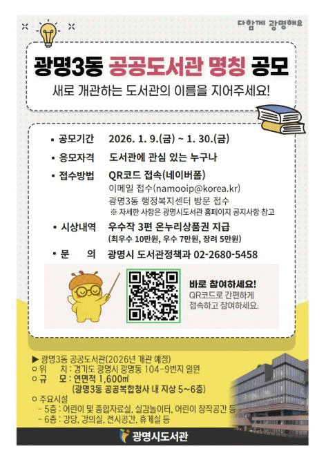 [»çȸ] ±¤¸í½Ã, 10¿ù °³°ü ¾ÕµÐ ±¤¸í3µ¿ °ø°øµµ¼­°ü À̸§ °ø¸ð |2026. 01.09