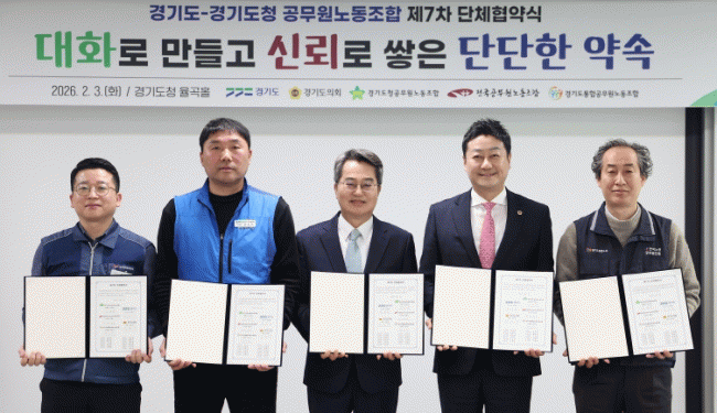 [Á¤Ä¡] °æ±âµµ, µµÃ» 3°³ °ø¹«¿ø³ëÁ¶¿Í Á¦7Â÷ ´ÜüÇù¾à ü°á ¡¦±èµ¿¿¬ ¡°¼­·Î °£ÀÇ ½Å·Ú·Î ÇÑÆÀ µÇÀÚ¡± |2026. 02.03