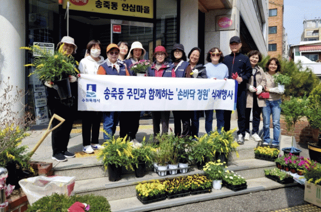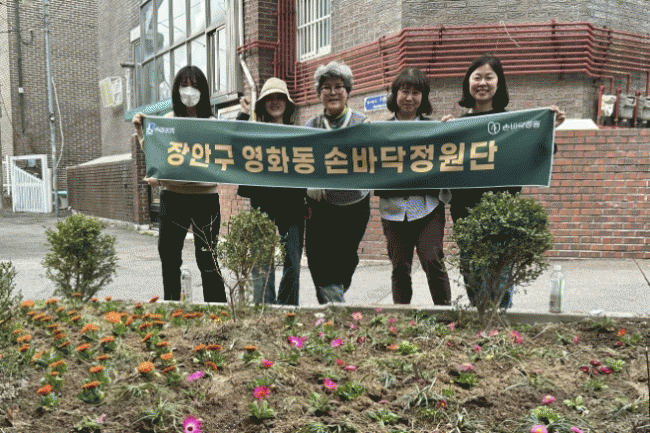 [NWS¹æ¼Û=Çѽ¸ñ ±âÀÚ]¼ö¿ø½Ã Àå¾È±¸ ¿µÈ­µ¿ ¸¶À»¸¸µé±âÇùÀÇȸ´Â Áö³­ 6ÀÏ, °ü³» ¼Õ¹Ù´Ú Á¤¿ø Áß ÇϳªÀÎ ¡®°ñ¸ñ½°ÅÍÁ¤¿ø¡¯¿¡¼­ »õº½¸ÂÀÌ È¯°æ Á¤ºñ¿Í ²É ½É±â Ȱµ¿À» ÆîÃÆ´Ù. À̳¯ Çà»ç¿¡´Â ¸¶À»¸¸µé±âÇùÀÇȸ¿ø 5¸í°ú °ø¹«¿øÀÌ ÇÔ²² Âü¿©¡¦