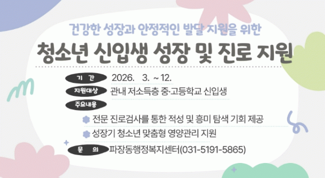 [»çȸ] ¼ö¿ø½Ã Àå¾È±¸ ÆÄÀ嵿, Àú¼ÒµæÃþ û¼Ò³â ½ÅÀÔ»ý ¼ºÀ塤Áø·Î Áö¿ø»ç¾÷ ÃßÁø |2026. 04.07