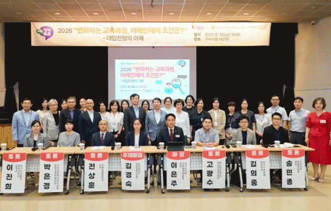 [NWS¹æ¼Û=Çѽ¸ñ ±âÀÚ]°æ±âµµÀÇȸ ±³À°ÇàÁ¤À§¿øÈ¸ ÀÌÀºÁÖ ÀÇ¿ø(±¹¹ÎÀÇÈû, ±¸¸®2)ÀÌ ÁÂÀåÀ» ¸ÃÀº '2026 º¯È­ÇÏ´Â ±³À°°úÁ¤, ¹Ì·¡ÀÎÀçÀÇ Á¶°ÇÀº? - ´ëÀÔÀüÇüÀÇ ÀÌÇØ' Á¤Ã¥Åä·Ðȸ°¡ Áö³­ 8¿ù 29ÀÏ ±¸¸®½Ãû ´ë°­´ç¿¡¼­ °³ÃֵƴÙ. À̹ø Å䡦