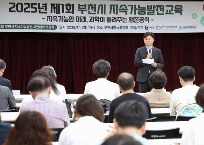 [NWS¹æ¼Û=Çѽ¸ñ ±âÀÚ]ºÎõ½Ã´Â Áö³­ 1ÀÏ ºÎõ½Ãû ¼ÒÅ븶´ç¿¡¼­ ¡®2025³â Á¦1ȸ Áö¼Ó°¡´É¹ßÀü±³À°¡¯°ú ºÎõ½Ã Áö¼Ó°¡´É¹ßÀü ½Ã¹Î´ëÇÐ °³°­½ÄÀ» ¿­°í, ½Ã¹Î°ú °ø¹«¿ø 100¿© ¸íÀÌ ÇÔ²²ÇÏ´Â ¹Î°ü ÇÕµ¿ ±³À°À» ÁøÇàÇß´Ù. À̳¯ Çà»ç¿¡´Â Á¶¿ë¡¦