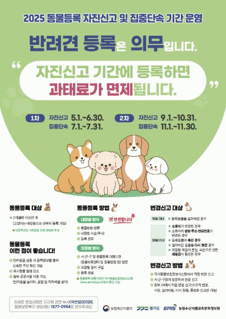 [NWS¹æ¼Û=Çѽ¸ñ ±âÀÚ]°¡Æò±ºÀÌ ¹Ý·Áµ¿¹° µî·Ï Ȱ¼ºÈ­¸¦ À§ÇØ ÀÌ´Þ 1ÀϺÎÅÍ 10¿ù 31ÀϱîÁö ¡®2Â÷ µ¿¹°µî·Ï ÀÚÁø½Å°í ±â°£¡¯À» ¿î¿µÇÑ´Ù. À̹ø ±â°£ µ¿¾È µ¿¹°µî·ÏÀ» ÇÏÁö ¾Ê¾Ò°Å³ª µî·ÏÁ¤º¸ º¯°æÀ» ´©¶ôÇÑ ¹Ý·ÁÀÎÀº °úÅÂ·á ¾øÀÌ ½Å°íÇÒ ¼ö¡¦