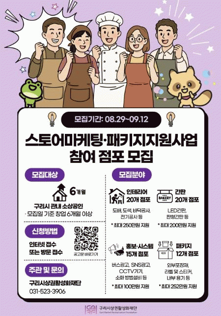 [NWS¹æ¼Û=Çѽ¸ñ ±âÀÚ]±¸¸®½Ã»ó±ÇȰ¼ºÈ­Àç´ÜÀº ±¸¸®½Ã ¼Ò»ó°øÀÎÀÇ °æ¿µ ȯ°æ °³¼±°ú ¸¶ÄÉÆÃ °æÀï·Â °­È­¸¦ À§ÇØ 8¿ù 29ÀϺÎÅÍ 9¿ù 12ÀϱîÁö ¡®½ºÅä¾î¸¶ÄÉÆÃ¡¤ÆÐŰÁö Áö¿ø»ç¾÷¡¯ Âü¿© Á¡Æ÷¸¦ ¸ðÁýÇÑ´Ù°í ¹àÇû´Ù. À̹ø »ç¾÷Àº Áö¿ª ³» â¾÷¡¦