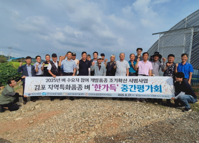 [NWS¹æ¼Û=Çѽ¸ñ ±âÀÚ]±èÆ÷½Ã³ó¾÷±â¼ú¼¾ÅÍ´Â Áö³­ 8¿ù 27ÀÏ ÅëÁøÀ¾ µµ»ç¸® ÀÏ¿ø¿¡¼­ ¡®º­ ¼ö¿äÀÚ Âü¿© °³¹ßǰÁ¾ Á¶±âÈ®»ê ½Ã¹ü»ç¾÷¡¯ÀÇ ÀÏȯÀ¸·Î ³ó¾÷ÀÎ ¹× °ü°èÀÚ 30¿© ¸íÀÌ Âü¿©ÇÑ °¡¿îµ¥ ±èÆ÷ Áö¿ªÆ¯È­ º­ ½ÅǰÁ¾ÀÎ ¡®ÇѰ¡µæ¡¯ÀÇ Áß°£¡¦