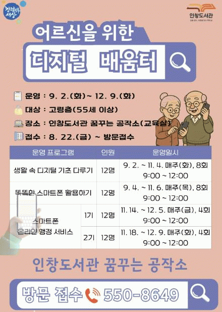 [NWS¹æ¼Û=Çѽ¸ñ ±âÀÚ]±¸¸®½Ã ÀÎâµµ¼­°ü ¸ÞÀÌÄ¿½ºÆäÀ̽º ¡®²Þ²Ù´Â °øÀÛ¼Ò¡¯´Â 9¿ù 2ÀϺÎÅÍ 12¿ù 9ÀϱîÁö °í·ÉÃþ ½Ã¹ÎÀÇ µðÁöÅÐ ÀÌÇØ·Â Çâ»ó°ú Á¤º¸Àû Âü¿© ±âȸ È®´ë¸¦ À§ÇÑ '2025³â µðÁöÅÐ ¹è¿òÅÍ'¸¦ ¿î¿µÇÑ´Ù. °úÇбâ¼úÁ¤º¸Åë½ÅºÎ¿Í ¡¦