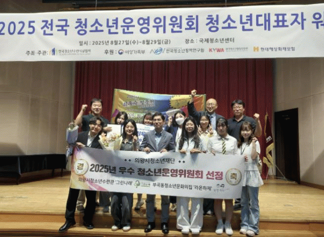 [NWS¹æ¼Û=Çѽ¸ñ ±âÀÚ]ÀǿսÃû¼Ò³âÀç´Ü »êÇÏ ÀǿսÃû¼Ò³â¼ö·Ã°ü û¼Ò³â¿î¿µÀ§¿øÈ¸ ¡®±×¸°³ª·¡¡¯¿Í ºÎ°îµ¿Ã»¼Ò³â¹®È­ÀÇÁý ¡®¶ó¿ÂÇÏÁ¦¡¯°¡ Áö³­ 27ÀÏ ¡®2025³â Àü±¹ ¿ì¼ö û¼Ò³â¿î¿µÀ§¿øÈ¸ ¼±Á¤ »ç¾÷¡¯¿¡¼­ °¢°¢ ÃÖ¿ì¼ö»ó°ú ¿ì¼ö»óÀ» ¼ö»ó¡¦